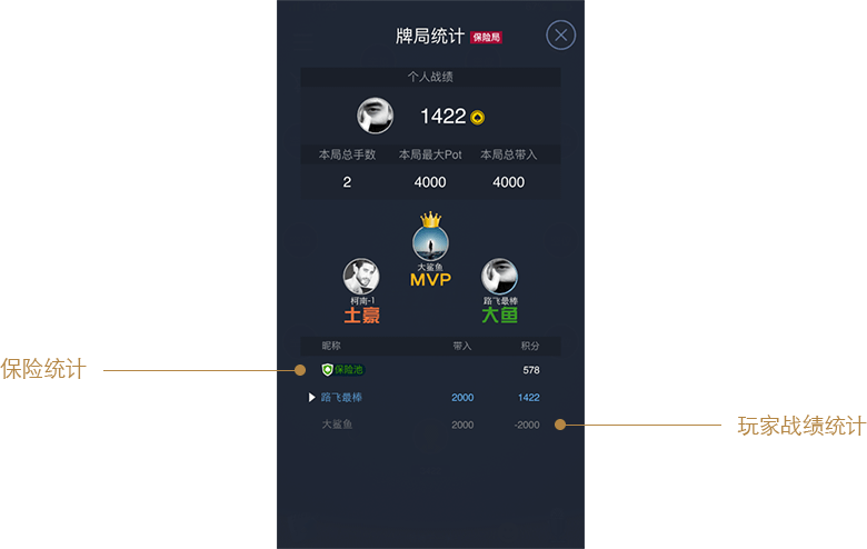 踢出牌局——使用此功能,在此轮手牌结束后,该玩家被踢出出局,出局后,玩家不可再次进入该牌局游戏。
