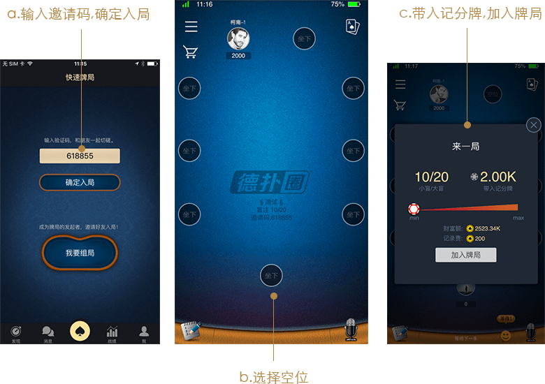 输入邀请码点击确定入局 选择空位