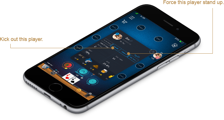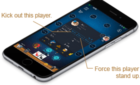 Force this player stand up--Click ‘stand up’ can force this player stand up after this hand. After been forced to stand up the player still can re-join this game.