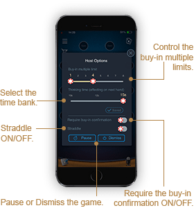 • Game creator can manage by clicking player’s profile photo to see the host options on the table screen.