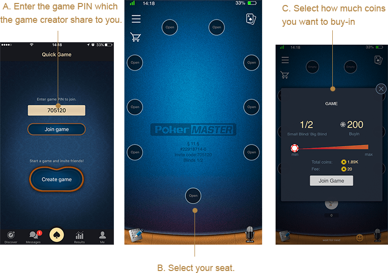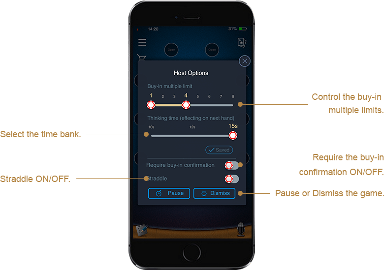 When the require buy-in confirmation is ON, player’s buy-in confirmation notice will be send as message to the game creator, wait for the game creator approval for this buy-in.