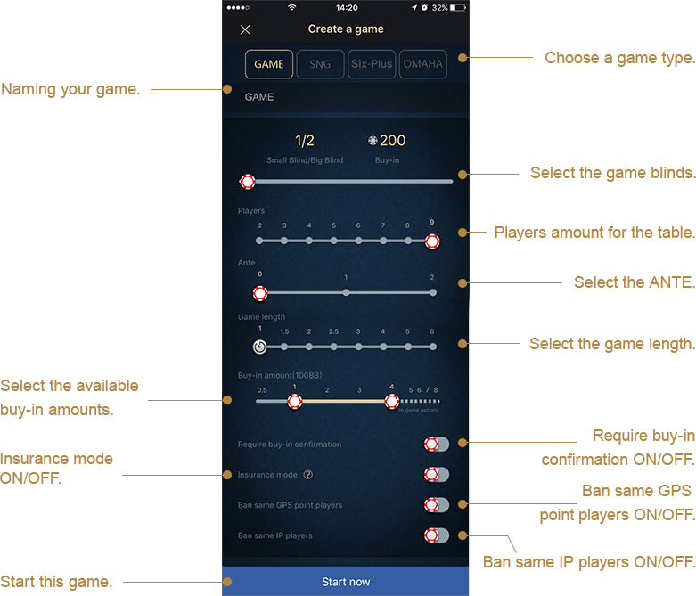 For fair play reason, ban same GPS point is prohibit the players who near by existed player to join at the same table.